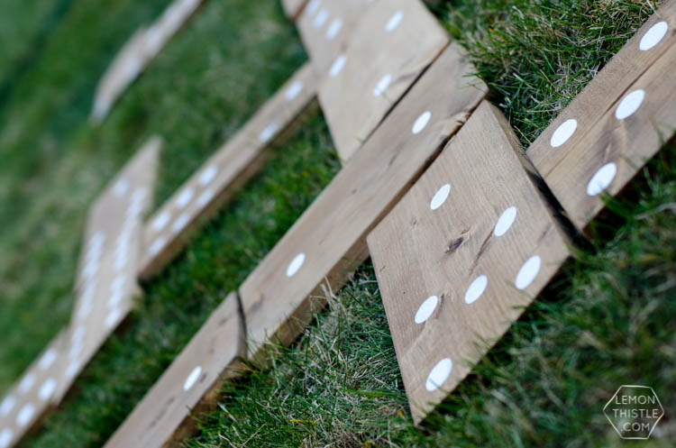 Another perfect DIY outdoor game is giant dominoes. It works for all different age groups. It's a great way to boost those problem-solving skills.