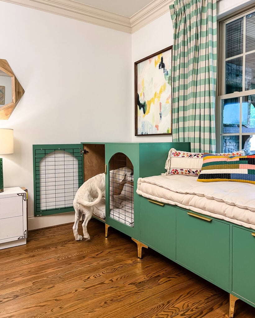 We were so impressed with Sherwin-Williams Emerald Urethane Trim Enamel that we later used it to paint the DIY dog crates and custom bench for our bedroom. No, they aren't kitchen cabinets, but they are all solid wood cabinetry we built and painted. And they get used, touched, and banged into frequently. We painted them nearly two years ago, but the paint looks the same as it did the day we finished.